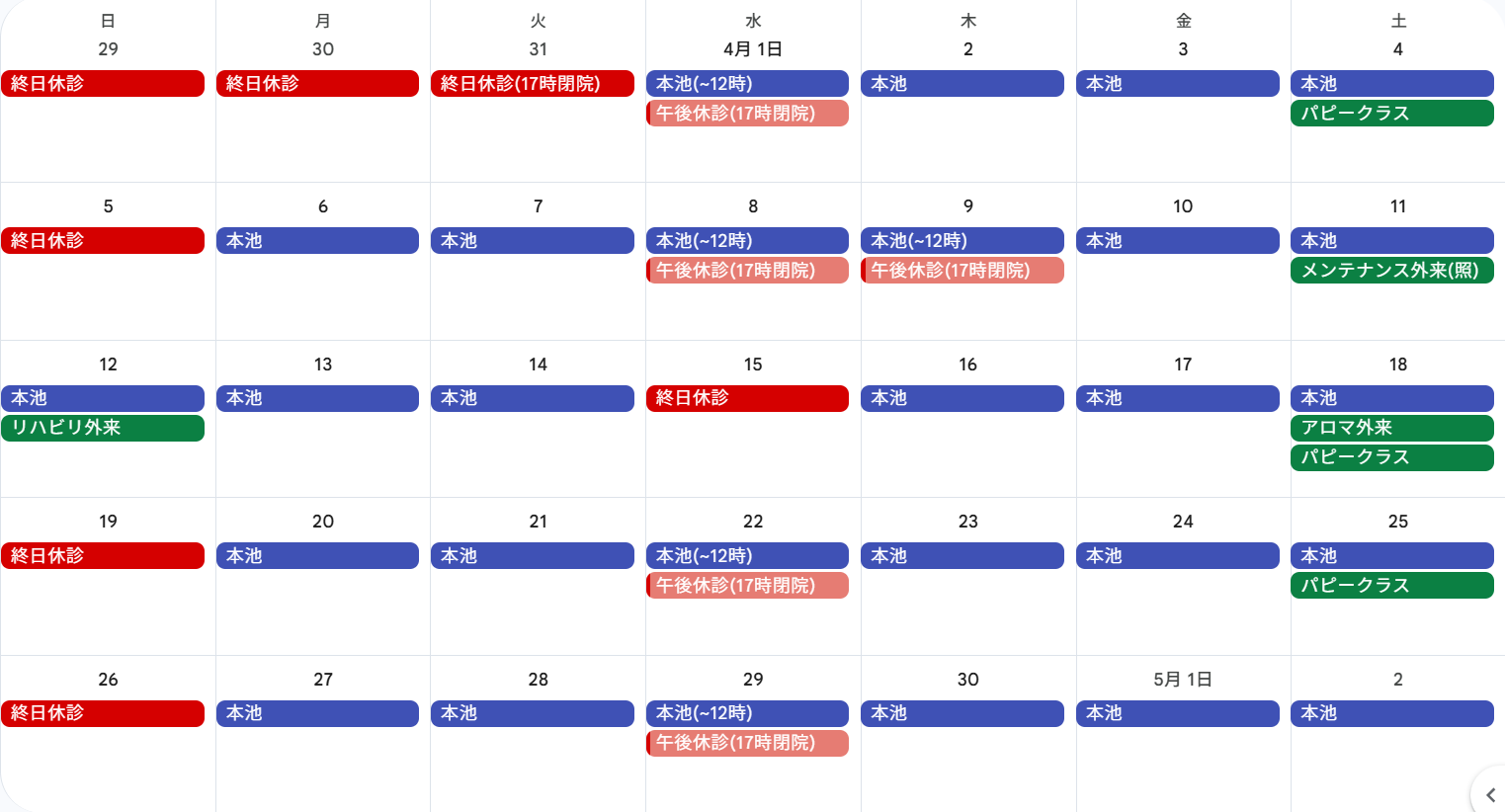 4月の診療予定